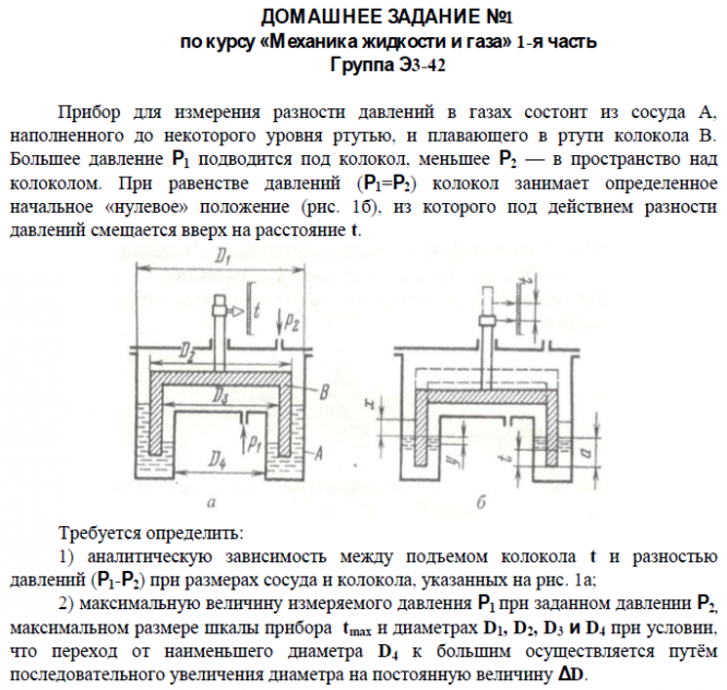 Для студентов МГТУ им. Н.Э.Баумана по предмету Механика жидкости и газа (МЖГ или Гидравлика)Домашнее задание №1 (вариант №6)Домашнее задание №1 (вариант №6)