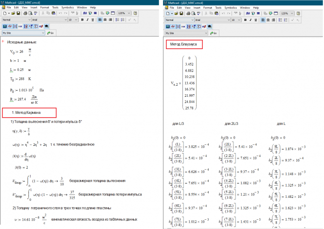 ДЗ 2 - Расчет ламинарного пограничного слоя на пластине, обтекаемой безградиентным потоком несжимаемой жидкости (MathCAD 15)