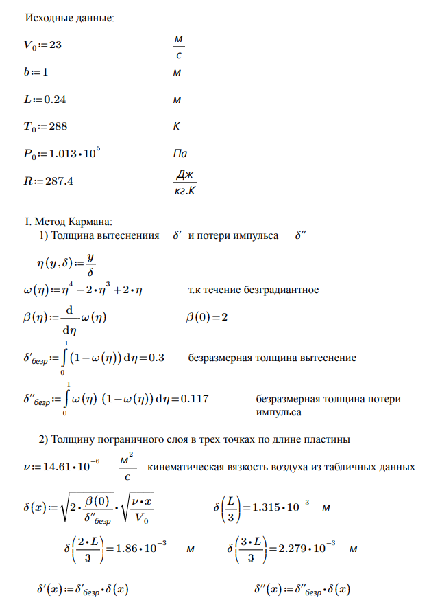 Для студентов МГТУ им. Н.Э.Баумана по предмету Механика жидкости и газа (МЖГ или Гидравлика)ДЗ 2 - Расчет ламинарного пограничного слоя на пластине, обтекаемой безградиентным потоком несжимаемой жидкости (PDF, MathCAD Prime + Компас (Графики)ДЗ 2 - Расчет ламинарного пограничного слоя на пластине, обтекаемой безградиентным потоком несжимаемой жидкости (PDF, MathCAD Prime + Компас (Графики)