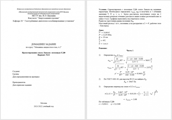 Для студентов МГТУ им. Н.Э.Баумана по предмету Механика жидкости и газа (МЖГ или Гидравлика)Проектирование сопла Лаваля с помощью ГДФПроектирование сопла Лаваля с помощью ГДФ