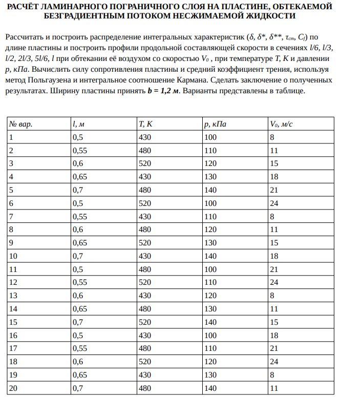 Показать/скрыть дополнительное описаниеРАСЧЁТ ЛАМИНАРНОГО ПОГРАНИЧНОГО СЛОЯ НА ПЛАСТИНЕ, ОБТЕКАЕМОЙ БЕЗГРАДИЕНТНЫМ ПОТОКОМ НЕСЖИМАЕМОЙ ЖИДКОСТИ .