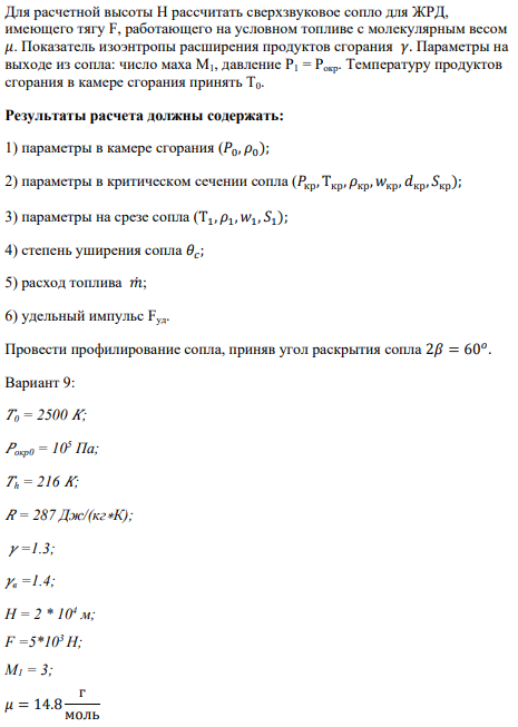Для студентов МГТУ им. Н.Э.Баумана по предмету Механика жидкости и газа (МЖГ или Гидравлика)Расчет и профилирование сверхзвукового соплаРасчет и профилирование сверхзвукового сопла