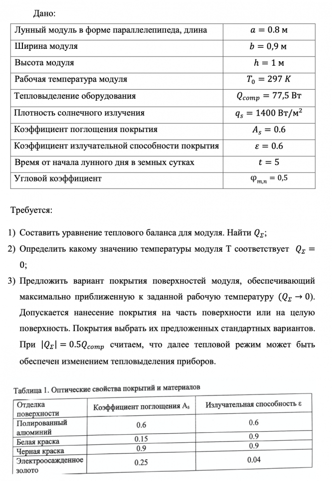 Для студентов МГТУ им. Н.Э.Баумана по предмету Механика жидкости и газа (МЖГ или Гидравлика)Расчет теплового режима лунного модуляРасчет теплового режима лунного модуля