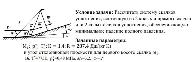 ДЗ 2: Расчёт первого и второго косого скачка или второго косого и прямого скачков уплотнения вариант 16