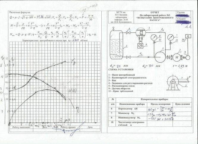 Для студентов МГТУ им. Н.Э.Баумана по предмету Механика жидкости и газа (МЖГ или Гидравлика)Испытание центробежного насосаИспытание центробежного насоса