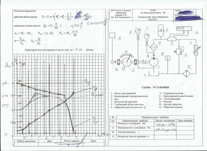 Для студентов МГТУ им. Н.Э.Баумана по предмету Механика жидкости и газа (МЖГ или Гидравлика)Испытание шестеренного насосаИспытание шестеренного насоса