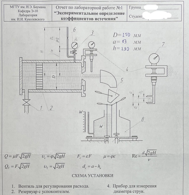 Для студентов МГТУ им. Н.Э.Баумана по предмету Механика жидкости и газа (МЖГ или Гидравлика)Экспериментальное определение коэффициентов истеченияЭкспериментальное определение коэффициентов истечения