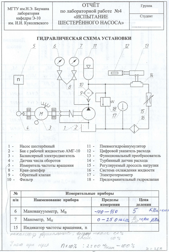 Для студентов МГТУ им. Н.Э.Баумана по предмету Механика жидкости и газа (МЖГ или Гидравлика)Испытание шестеренного насосаИспытание шестеренного насоса