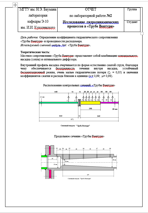 Для студентов МГТУ им. Н.Э.Баумана по предмету Механика жидкости и газа (МЖГ или Гидравлика)Исследование гидродинамических процессов в «Трубе Вентури» Исследование гидродинамических процессов в «Трубе Вентури»