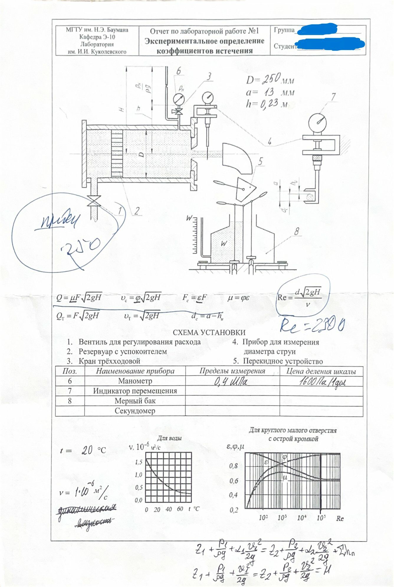 Для студентов МГТУ им. Н.Э.Баумана по предмету Механика жидкости и газа (МЖГ или Гидравлика)Экспериментальное определение коэффициентов истеченияЭкспериментальное определение коэффициентов истечения