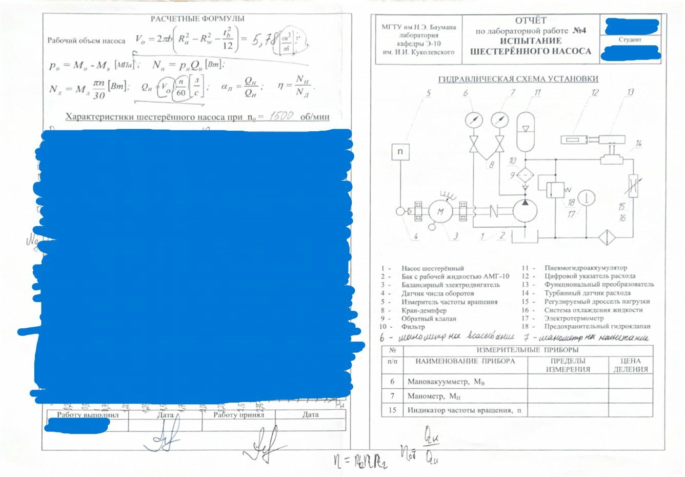 Для студентов МГТУ им. Н.Э.Баумана по предмету Механика жидкости и газа (МЖГ или Гидравлика)Испытание шестрённого насосаИспытание шестрённого насоса