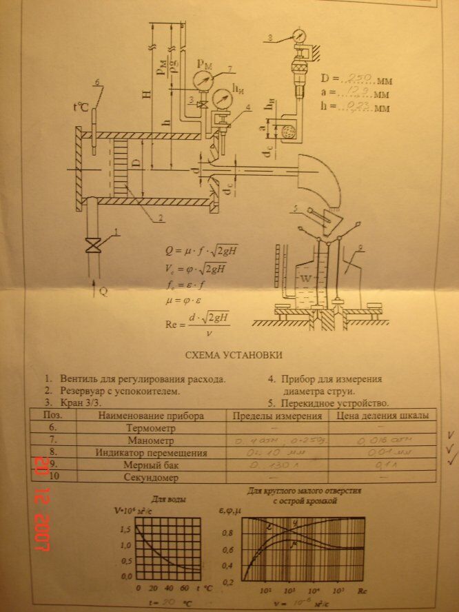Для студентов МГТУ им. Н.Э.Баумана по предмету Механика жидкости и газа (МЖГ или Гидравлика)Экспериментальное определение коэффициентов истеченияЭкспериментальное определение коэффициентов истечения