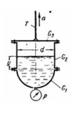 2) Силу давления на дно сосуда, если вакуумметр, присоединенный к нижней точке сосуда, показывал V = 30 кПа, когда сосуд был неподвижен.
