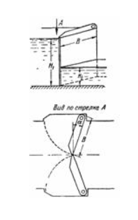 Задача (Куколевский И.И.) 2-6. Двустворчатые ворота отгораживают шлюзовую камеру от канала с низовой стороны шлюза. При заполненном шлюзе вода по обе стороны ворог находится на уровнях H1=18 м и H2 = 6 м. Найти равнодействующую Р сил давления воды на каждую из створок ворог. На какой высоте х от дна проходит линия действия силы Р? Начертить эпюру нагрузки от воздействия воды на поверхность ворот. Определить силу Р0, воспринимаемую опорами, расположенными на оси вращения каждой из створок. При решении поверхность створки ворот считать плоской, шириной В= 16 м; угол а = 70°.