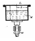 Задача (Куколевский И.И.) 4-15. Замкнутый цилиндр размерами R= 0,4 лг и H0 = 0,7 м содержит воду в количестве W = 0,25 м3 и вращается относительно вертикальной оси с угловой скоростью w = 10; 20 и 100 рад/с. Определить усилия, действующие при указанных оборотах на крышку цилиндра, если давление над водой равно атмосферному.