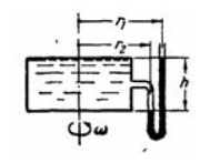 Задача (Куколевский И.И.) 4-10. Цилиндрический сосуд, заполненный водой, приведен во вращение с постоянной угловой скоростью w = 10 рад/с. Найти наименьшее давление в воде, заполняющей сосуд, по показанию h= 1 м ртутного манометра, вращающегося вместе с сосудом, если r1 = 0,8 м; r2 = 0,7 м. При какой угловой скорости равновесие жидкости в сосуде нарушится?