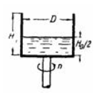 Задача (Куколевский И.И.) 4-13. Найти число оборотов цилиндрического сосуда высотой H0 = 1,2 м и диаметром D = 0,8м, наполненного жидкостью до высоты H0/2, при котором жидкость поднимется до краев сосуда. Определить число оборотов сосуда, при котором в нем останется лишь половина первоначального объема жидкости.