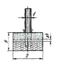 Задача (Куколевский И.И.) 1.35. Цилиндрический сосуд диаметром D = 1 м и высотой Н = 2 м через отверстие в крышке заполнен водой так, что свободная поверхность установилась на середине высоты сосуда, а давление воздуха в нем равно атмосферному (Pат = 98 кПа). Как изменится положение уровня воды в сосуде и давление воздуха в нем после опускания в сосуд плунжера, диаметр которого d = 40 см и масса m = 500 кг? Процесс сжатия воздуха, замкнутого в сосуде, считать изотермическим; трением плунжера в направляющей втулке пренебречь.