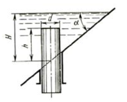 Задача (Куколевский И.И.) 3.35. Определить горизонтальную Рг и вертикальную Рв силы давления воды па вертикальный цилиндр диаметром d = 400 мм, вставленный через отверстие в наклонной стенке (а = 45) внутрь резервуара на высоту h= 1 м. Уровень воды H = 1,6м.