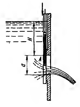 Задача (Куколевский И.И.) 11-20. Щит А, опускаясь с постоянной скоростью v=0,05 м/с, перекрывает квадратное отверстие (а=1м) в вертикальной стенке. Считая уровень воды в резервуаре постоянным (Н=3м), определить сколько воды вытечет за время закрытия отверстия. Коэффициент расхода отверстия принять в процессе закрытия постоянным и равным μ=0,59 ![]()