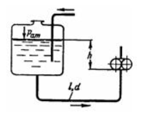 Задача (Куколевский И.И.) 9-28. Определить давление на входе в шестеренчатый насос системы смазки, подающий Q = 60 л/мин машинного масла при температуре t = 20°С (вязкость v = 2 Cт, относительный вес ? = 0,9). Длина и диаметр стального всасывающего трубопровода l = 5 м и d = 35 мм, его шероховатость ? = 0,1 мм. Входное сечение насоса расположено ниже свободной поверхности в маслобаке на h = 1 м. Как изменится давление перед насосом, если масло нагреется до температуры t = 80°С (v = 0,1 Cт, ? = 0,85)? Местные сопротивления в трубопроводе принимать равными 10% потерь на трение.