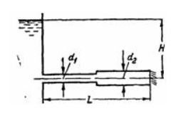 Задача (Куколевский И.И.) 9-22. Для подачи воды в количестве Q = 2,1 м3/мин на расстояние L = 400 м под напором H = 9 м можно использовать наличные чугунные трубы диаметром d1= 150 лл и d2 = 200 мм. Определить необходимые длины участков трубопровода, используя для подсчета потерь формулу (9-20) и принимая шероховатость труб = 1,2мм. Какой напор потребуется при заданном Q, если выполнить весь трубопровод диаметром d1= 150 мм?