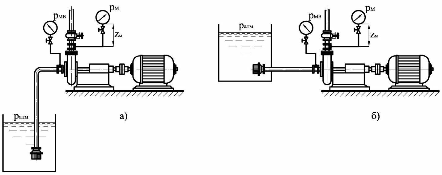 Главная » Учебные материалы » Механика жидкости и газа (МЖГ или Гидравлика) » Решения задач » Несколько классов/семестров » Определить напор насоса по показаниям манометра и мановакуумметра,nустановленных на напорном и всасывающем трубопроводах центробежногоnнасоса. Исходные данные:nа) РМ =1000кПа; РМВ = -50кПа; zМ = 0,1 м; v1 = v2.nб) РМ =350кПа; РМВ =32кПа; zМ = 0,15 м;