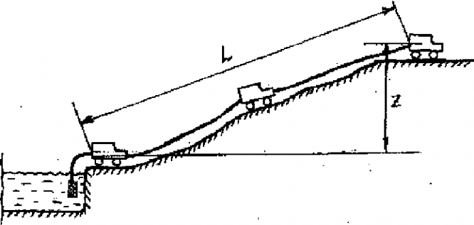 Определить количество автонасосов АНР-40(130), необходимое для подачи воды в перекачку, если разность высотных отметок между головным автонасосом и водоисточником Z=8м. Перекачка производится на расстояние L=1000м по двум прорезиненным рукавным линия