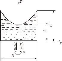 Главная » Учебные материалы » Механика жидкости и газа (МЖГ или Гидравлика) » Решения задач » Несколько классов/семестров » Номер 1 » Вариант 58 » В сосуд высотой H = 0,3 м залита жидкость до уровня h = 0,2 м. Определить, до какой угловой скорости ω можно раскрутить сосуд, с тем, чтобы жидкость не выплеснулась из него, если его диаметр D = 100 мм.