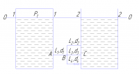 Резервуары А и В с постоянными и одинаковыми уровнями воды соединены системой труб, приведенные длины которых L1, L2, L3, L4, а диаметры соответственно d1, d2, d3, d4. Определить: При каком избыточном давлении Р над поверхностью воды в резервуаре А р
