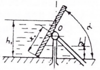 Главная » Учебные материалы » Механика жидкости и газа (МЖГ или Гидравлика) » Решения задач » УрГАУ » Несколько классов/семестров » Номер 29 » Для создания подпора в реке применяется плотина Шануана, представляющая собой плоский прямоугольный щит, который может вращаться вокруг горизонтальной оси О. Угол наклона щита α=60о, глубина воды перед щитом h1=3 м, а за щитом h2=1м. Определить полож