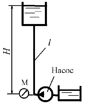 Главная » Учебные материалы » Механика жидкости и газа (МЖГ или Гидравлика) » Решения задач » САФУ им. Ломоносова » Несколько классов/семестров » Номер 9 » Вариант 19 » Насос подаёт воду в водонапорную башню по трубопроводу длиной l = 30 м, диаметром d = 5 см. Манометрическое давление, которое создает насос, р = 5,2 бар. Вода движется по трубопроводу со скоростью υ = 2,6 м/с. Определить, на какую высоту поднимется ж