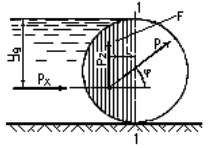 Главная » Учебные материалы » Механика жидкости и газа (МЖГ или Гидравлика) » Решения задач » Несколько классов/семестров » Определить величину и направление силы гидростатического давления воды на 1 м ширины вальцового затвора диаметром d=1,5м.