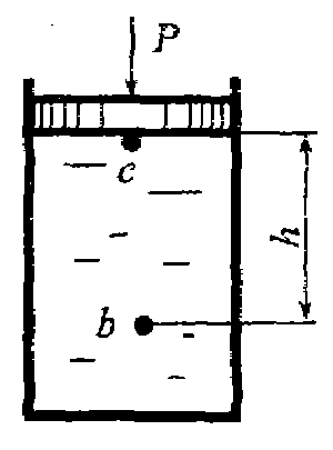 Главная » Учебные материалы » Механика жидкости и газа (МЖГ или Гидравлика) » Решения задач » САФУ им. Ломоносова » Несколько классов/семестров » Номер 2 » Вариант 10 » Определить абсолютное и избыточное давление в точке С под поршнем и в точке b на глубине h = 2 м, если диаметр поршня d = 0,2 м, а сила, действующая на поршень, Р = 3 кН. Плотность жидкости ρ = 850 кг/м3