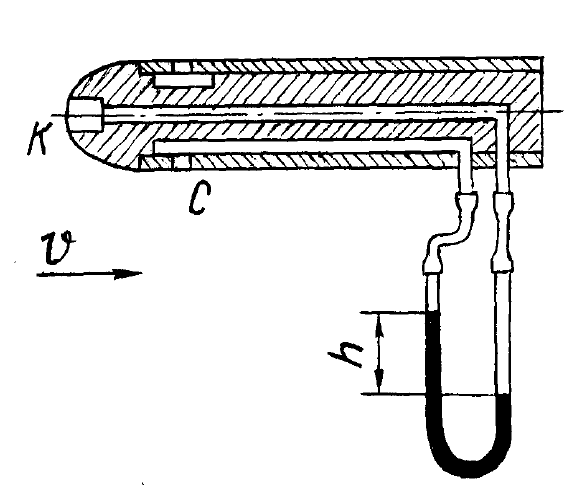 Главная » Учебные материалы » Механика жидкости и газа (МЖГ или Гидравлика) » Решения задач » Несколько классов/семестров » Для измерения скорости воздушного потока (ρв=1,26 кг/м3) использована скоростная трубка с двумя отверстиями - динамическим, расположенным в критической точке К, и статическим – в точке С, где коэффициент давления равен нулю. Определить скорость возду