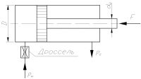 Главная » Учебные материалы » Механика жидкости и газа (МЖГ или Гидравлика) » Решения задач » Несколько классов/семестров » Жидкость плотностью ρ = 900 кг/м3 поступает в левую полость цилиндра через дроссель с коэффициентом расхода μ = 0,62 и диаметром d под избыточным давлением pн; давление на сливе pс. Поршень гидроцилиндра диаметром D под действием разности давлений в