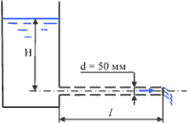 Главная » Учебные материалы » Механика жидкости и газа (МЖГ или Гидравлика) » Решения задач » Несколько классов/семестров » Определить длину трубы l, при которой расход жидкости из бака будет в 2 раза меньше, чем через отверстие того же диаметра d = 50 мм. Напор над отверстием равен H = 6 м. Принять: коэффициент гидравлического трения в трубе λ = 0,025; коэффициент сопрот