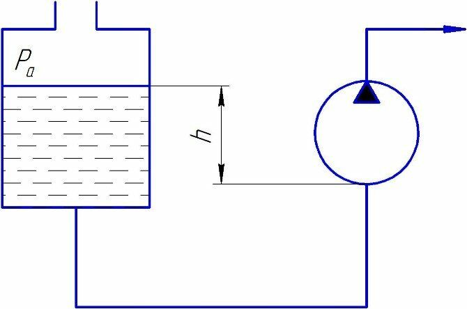 Определить избыточное давление на входе в радиально-поршневой насос системы управления, имеющий частоту вращения вала n, число цилиндров z, диаметр цилиндра d, эксцентриситет e, объемный КПД η0. Входное сечение насоса расположено ниже свободной повер