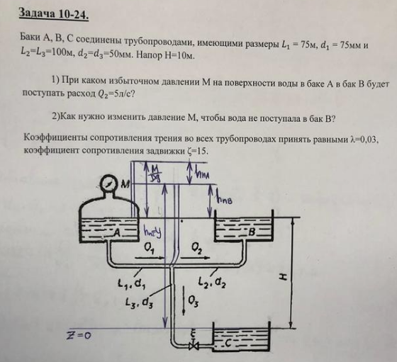 Для студентов по предмету Механика жидкости и газа (МЖГ или Гидравлика)Задача 10-24Задача 10-24