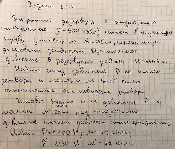 Для студентов по предмету Механика жидкости и газа (МЖГ или Гидравлика)Задача 2-24Задача 2-24