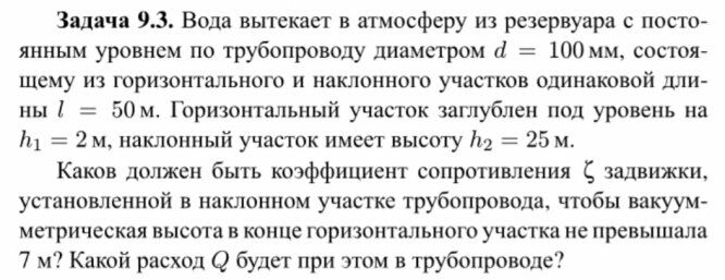 Для студентов по предмету Механика жидкости и газа (МЖГ или Гидравлика)Задача 9-3Задача 9-3
