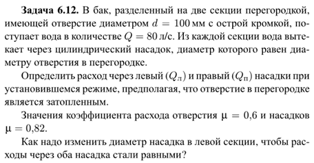 Для студентов по предмету Механика жидкости и газа (МЖГ или Гидравлика)Задача 6-12Задача 6-12
