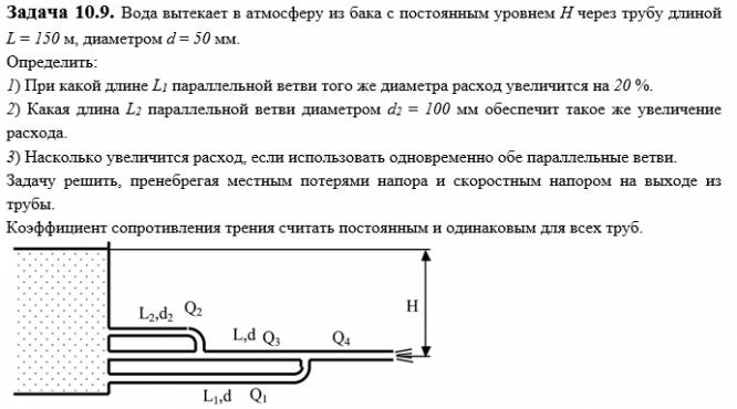 Для студентов по предмету Механика жидкости и газа (МЖГ или Гидравлика)Задача 10-9Задача 10-9