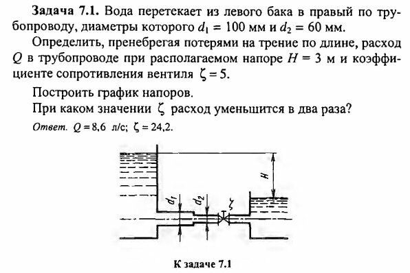 Для студентов по предмету Механика жидкости и газа (МЖГ или Гидравлика)Задача 7-1Задача 7-1