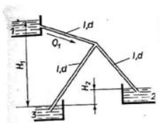 Задача (Куколевский И.И.) 10.38. Резервуары 1, 2 и 3 соединены одинаковыми стальными трубами длиной l = 8 м, диаметром d = 20 мм и шероховатостью ? = 0,1 мм.