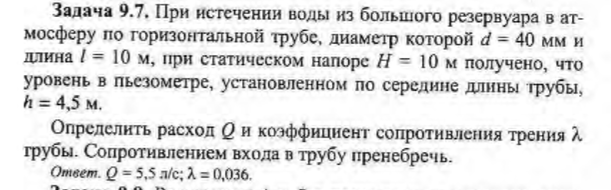 Для студентов по предмету Механика жидкости и газа (МЖГ или Гидравлика)Задача 9-7Задача 9-7