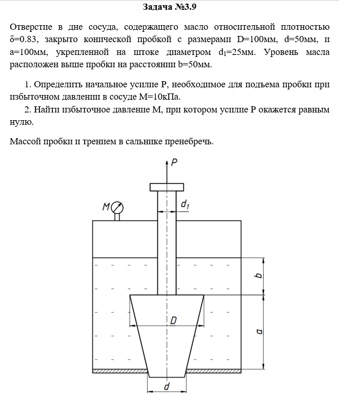 Для студентов по предмету Механика жидкости и газа (МЖГ или Гидравлика)Задача 3-9Задача 3-9