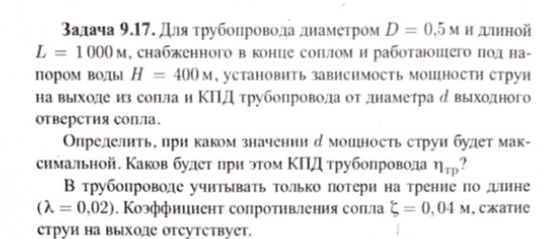 Для студентов по предмету Механика жидкости и газа (МЖГ или Гидравлика)Задача 9-17Задача 9-17