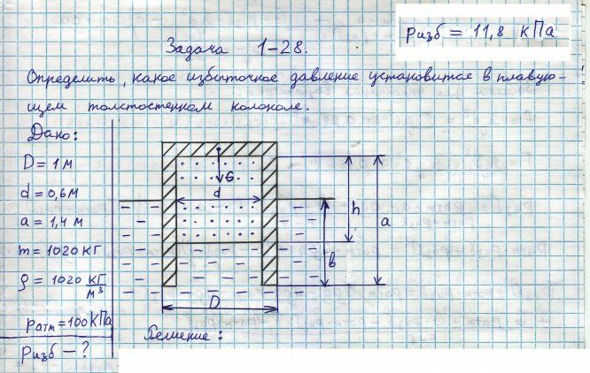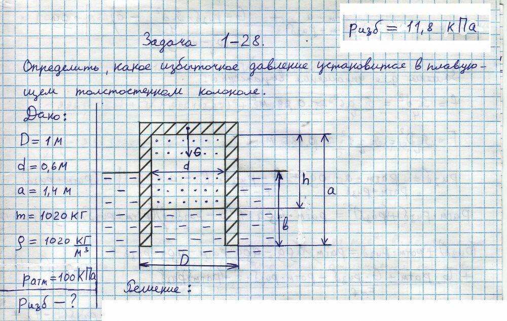Для студентов по предмету Механика жидкости и газа (МЖГ или Гидравлика)Задача 1-28Задача 1-28