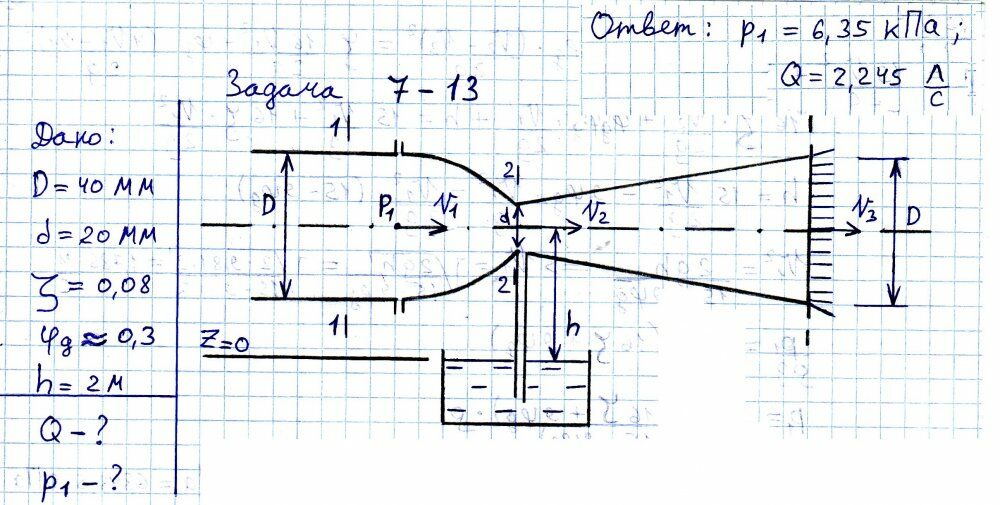 Для студентов по предмету Механика жидкости и газа (МЖГ или Гидравлика)Задача 7-13Задача 7-13